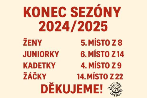 Děkujeme všem hráčkám, trenérům, trenérkám, rodičům a fanouškům za podporu během celé sezóny. Vaše nasazení a energie jsou pro náš klub nepostradatelné. Už teď se těšíme na další ročník a věříme, že společně posuneme náš volejbal zase o kousek dál.